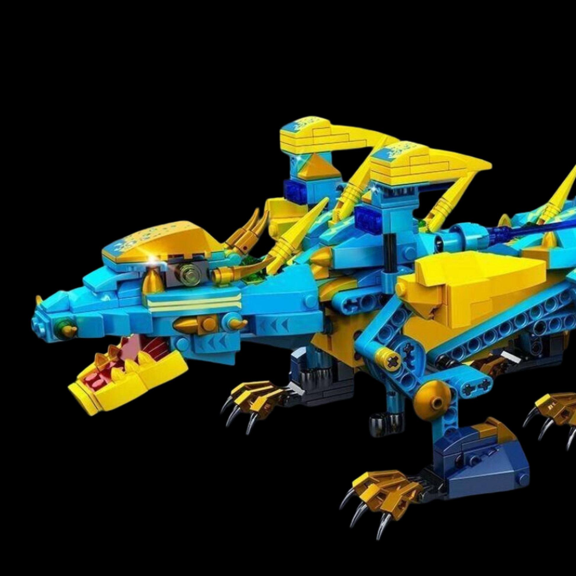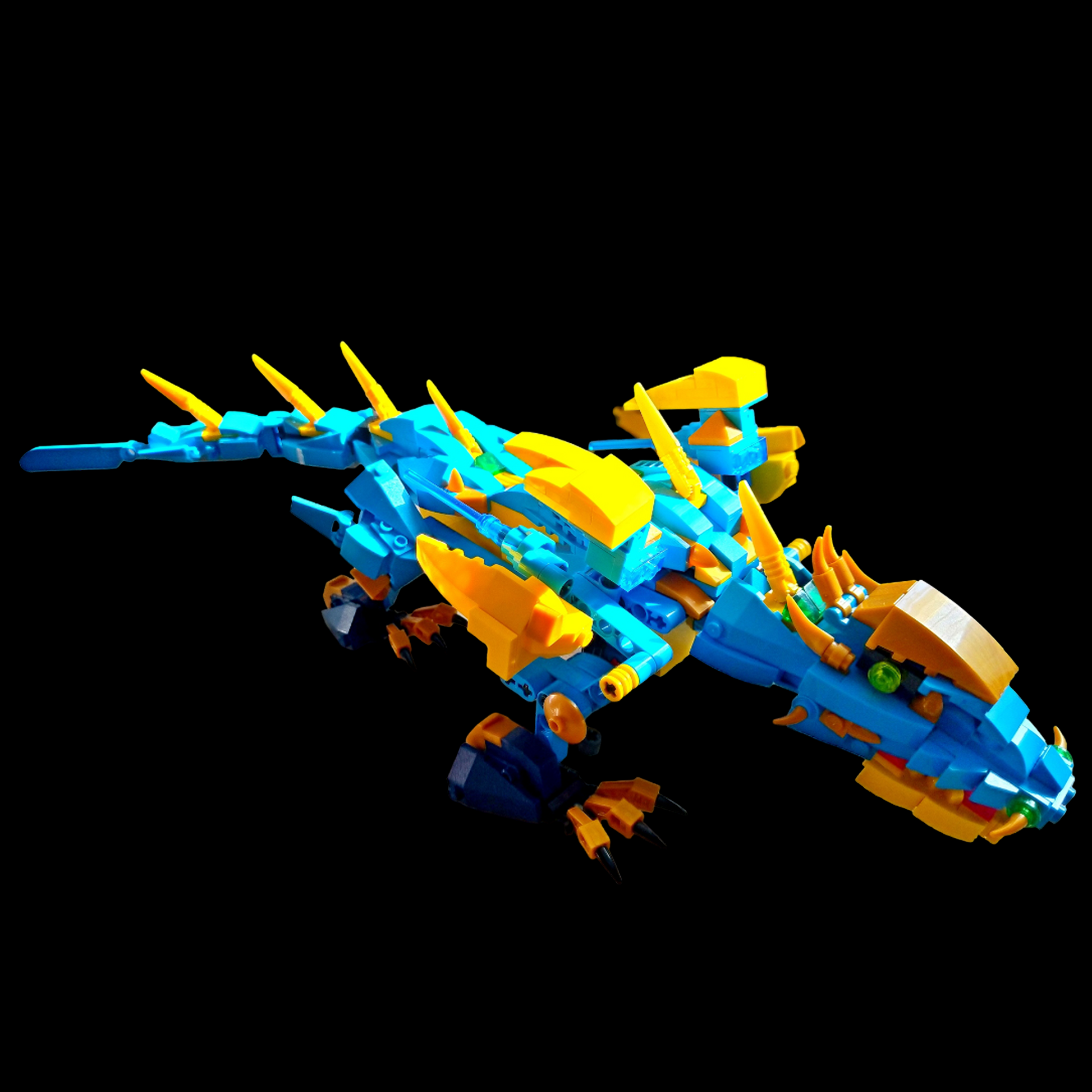 Der Gletscherdrache der Meere, bestehend aus 515 Bauteilen, ist eine majestätische Kreatur, die kühle Schönheit, hypnotische Bewegung und imposante dekorative Präsenz vereint.