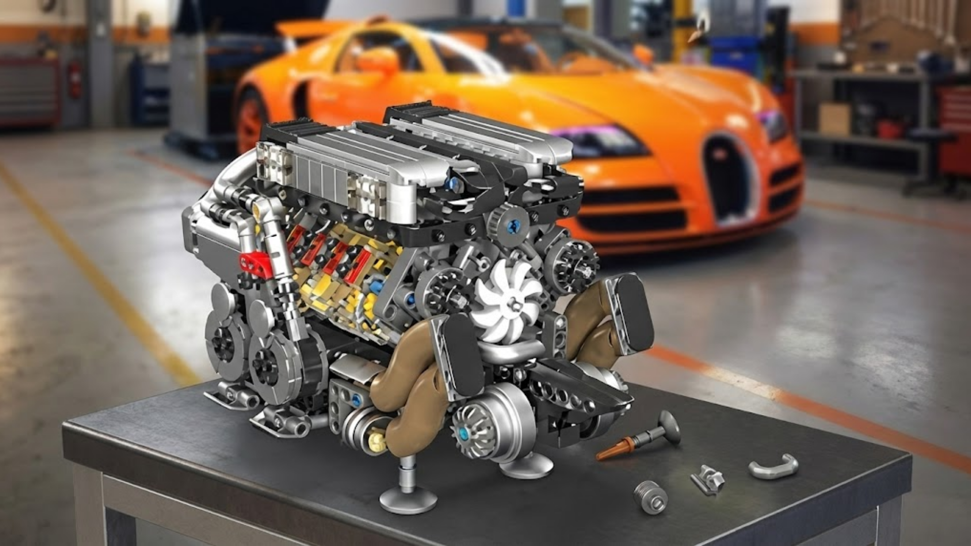 Con 952 pezzi, questo modello ricrea la mostruosa configurazione “W” a 16 cilindri, un’architettura esotica che combina la potenza di due motori V8 in un unico blocco compatto e devastante.