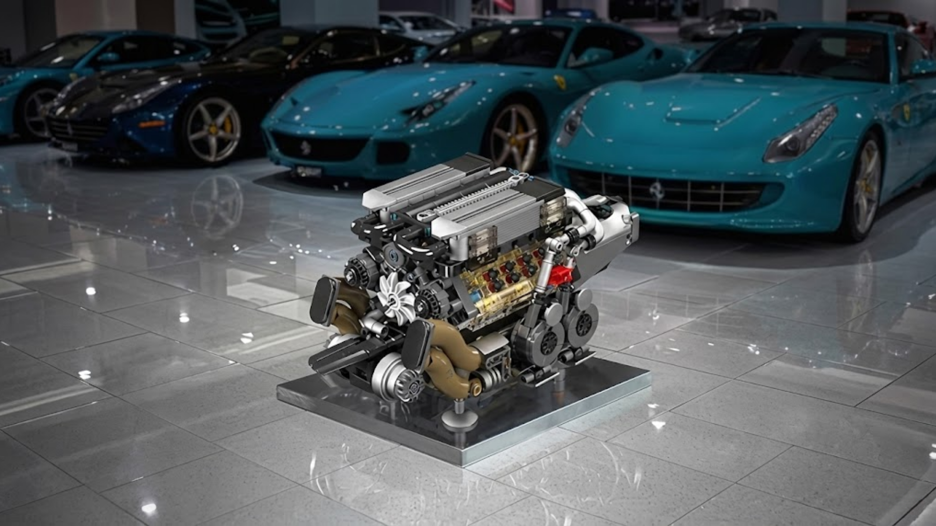 Potrai osservare la danza sincronizzata dei 16 pistoni, la rotazione dell’albero motore complesso e il movimento delle cinghie di distribuzione: tutto in perfetta armonia meccanica.