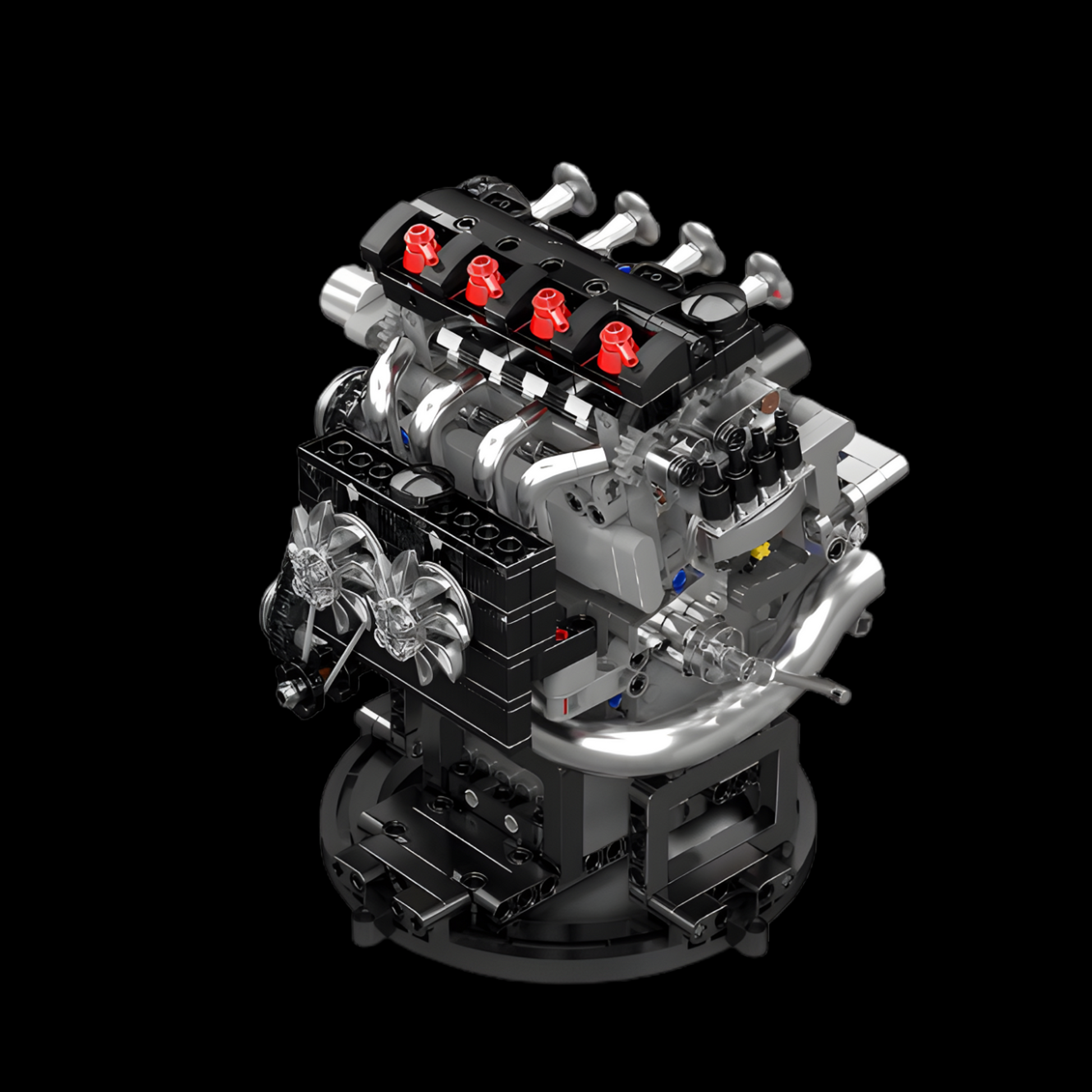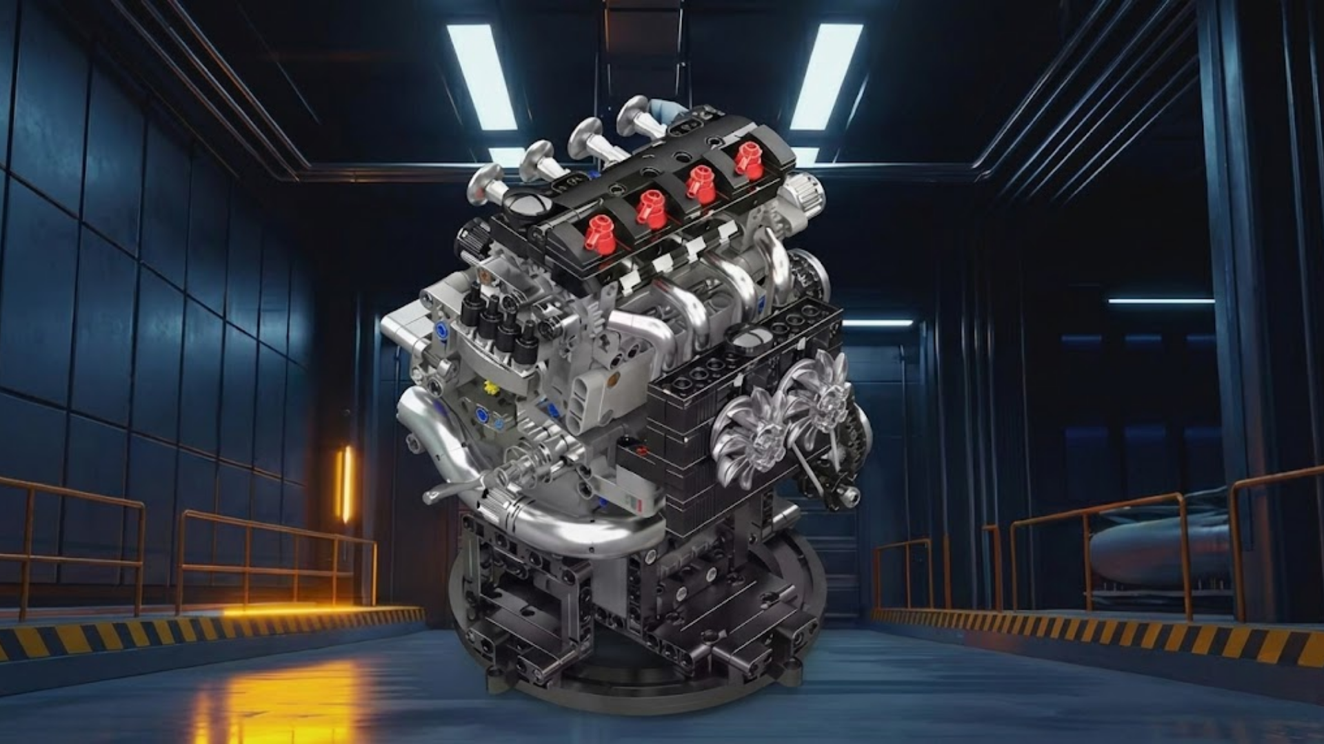 A differenza dei blocchi motore chiusi, questo modello utilizza elementi trasparenti sulla testata, consentendo di visualizzare i pistoni che si muovono freneticamente su e giù, simulando la celebre tecnologia di fasatura variabile delle valvole.