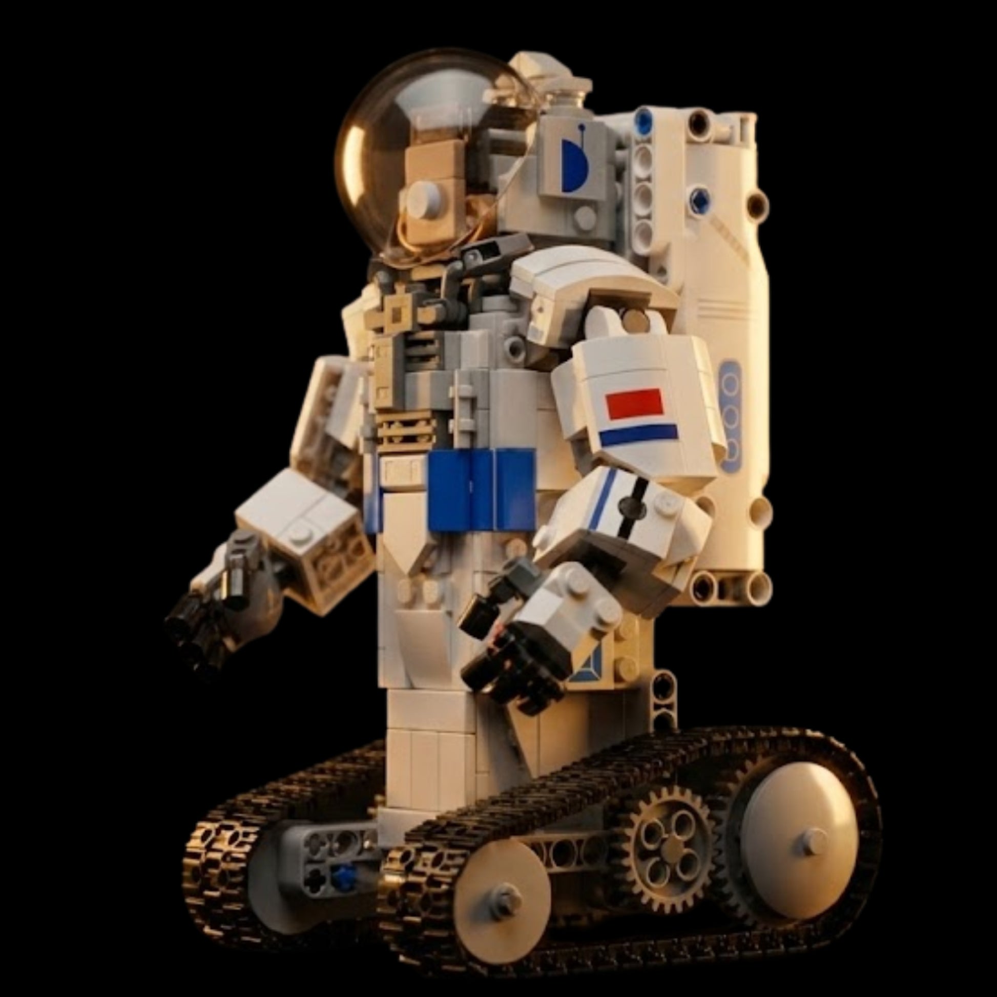 Zestaw zawiera 493 elementy, z których zbudujesz charyzmatycznego robota o astronautycznym designie, wyposażonego w hełm, plecak tlenowy oraz ruchome ramiona.