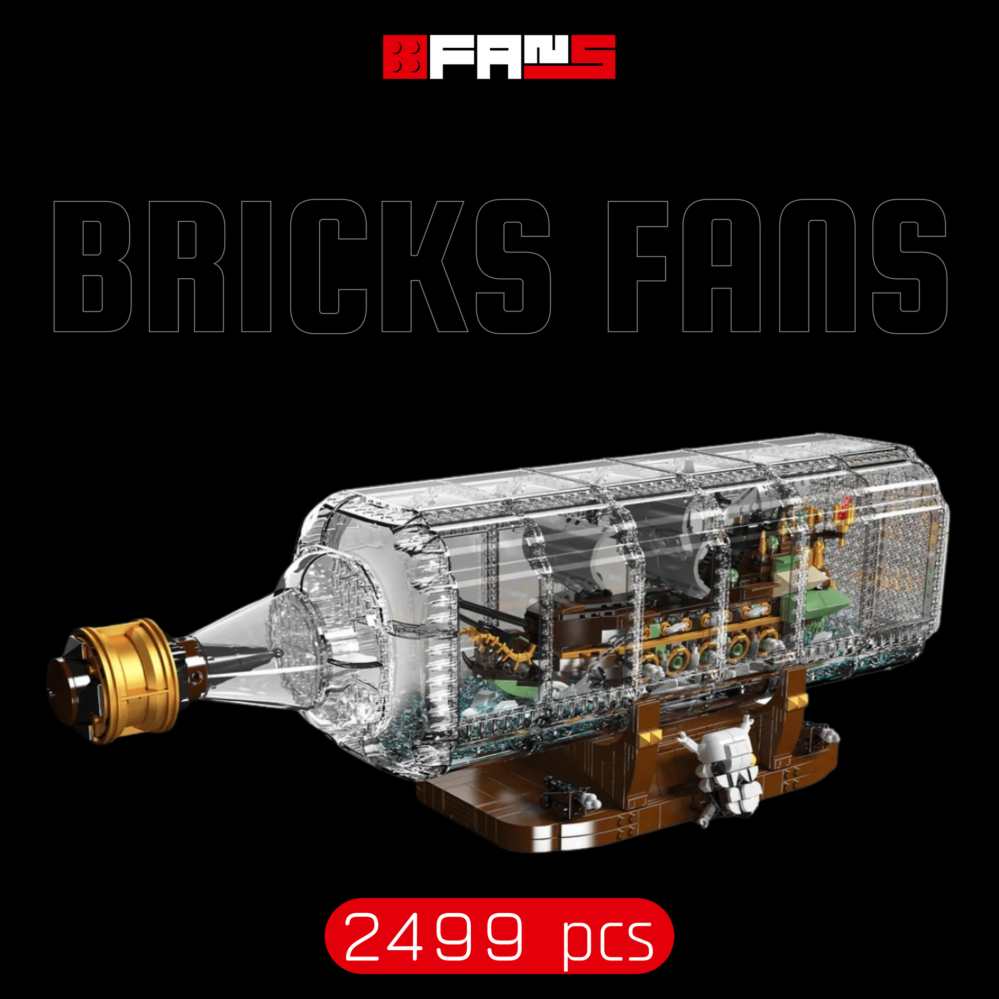 With 2,499 pieces, this model delivers a deep, immersive and completely engaging building experience, allowing you to explore every part of the legendary cursed ship as you watch it emerge inside a crystal-clear bottle.