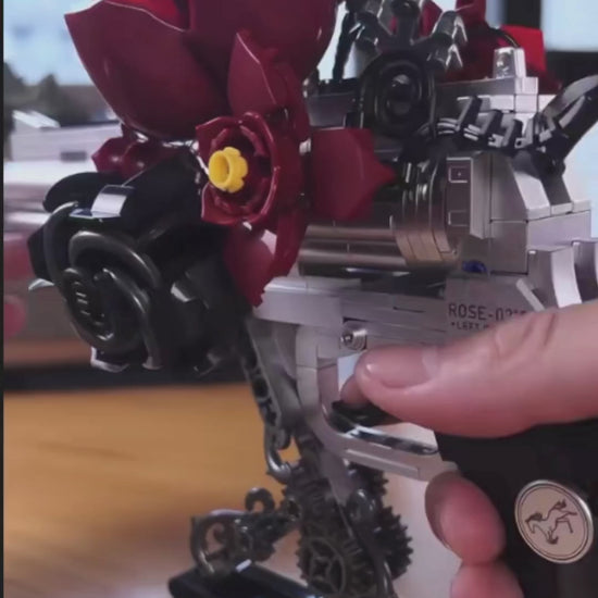 With 631 pieces, this model captures the “Guns N' Roses” aesthetic in its purest form, blending the visual weight of a classic Magnum with the elegance of red roses that seem to bloom from the steel.